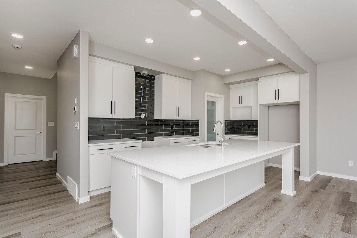 - The kitchen is perfect for entertaining, and features quartz counters with extensive cabinet space and a large island.