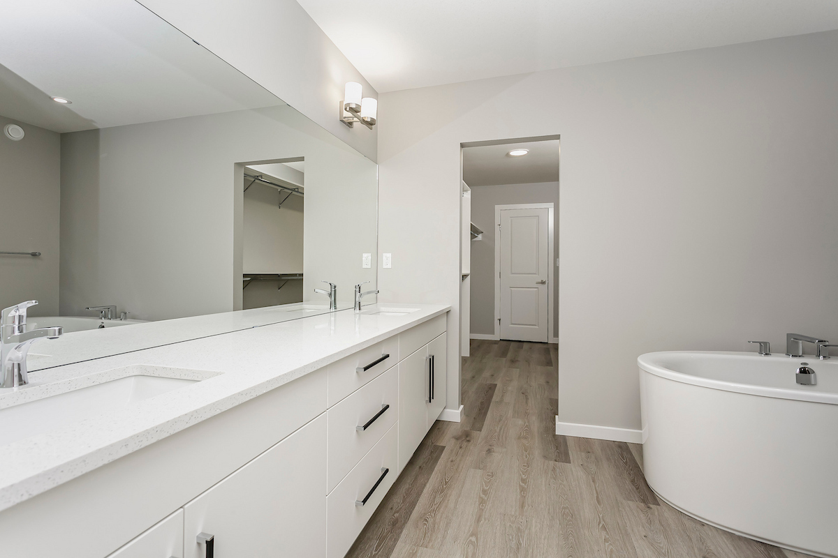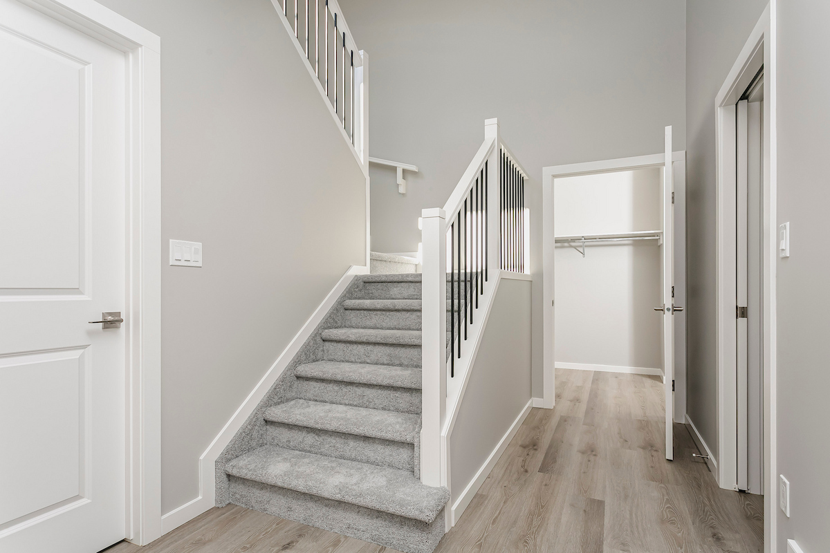 - Durable and stylish luxury vinyl plank flooring on the main floor, bathrooms and laundry room. Advanced stain and wear protection carpet with 35oz weight and 8lb. underlay on the second floor.
